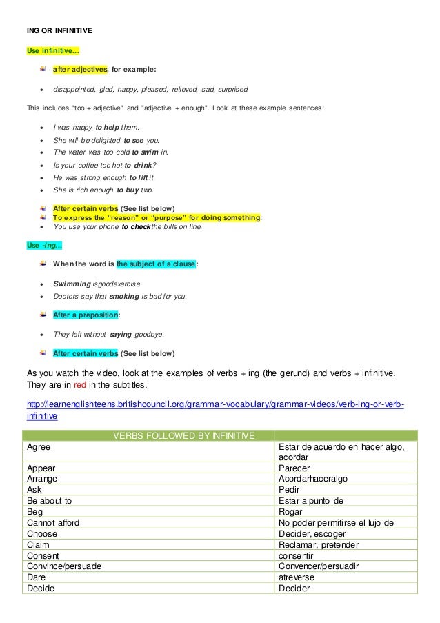 Ing Or Infinitive Vbs